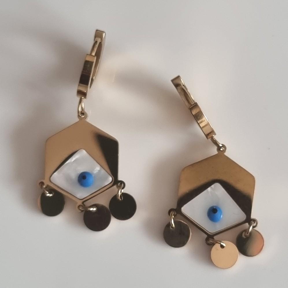 Introducing our waterproof and tarnish-free gold-plated earrings with an evil eye design. These earrings are perfect for those who want to add a touch of protection and good luck to their daily life. The evil eye design is believed to ward off negative energy and bring good fortune to the wearer.