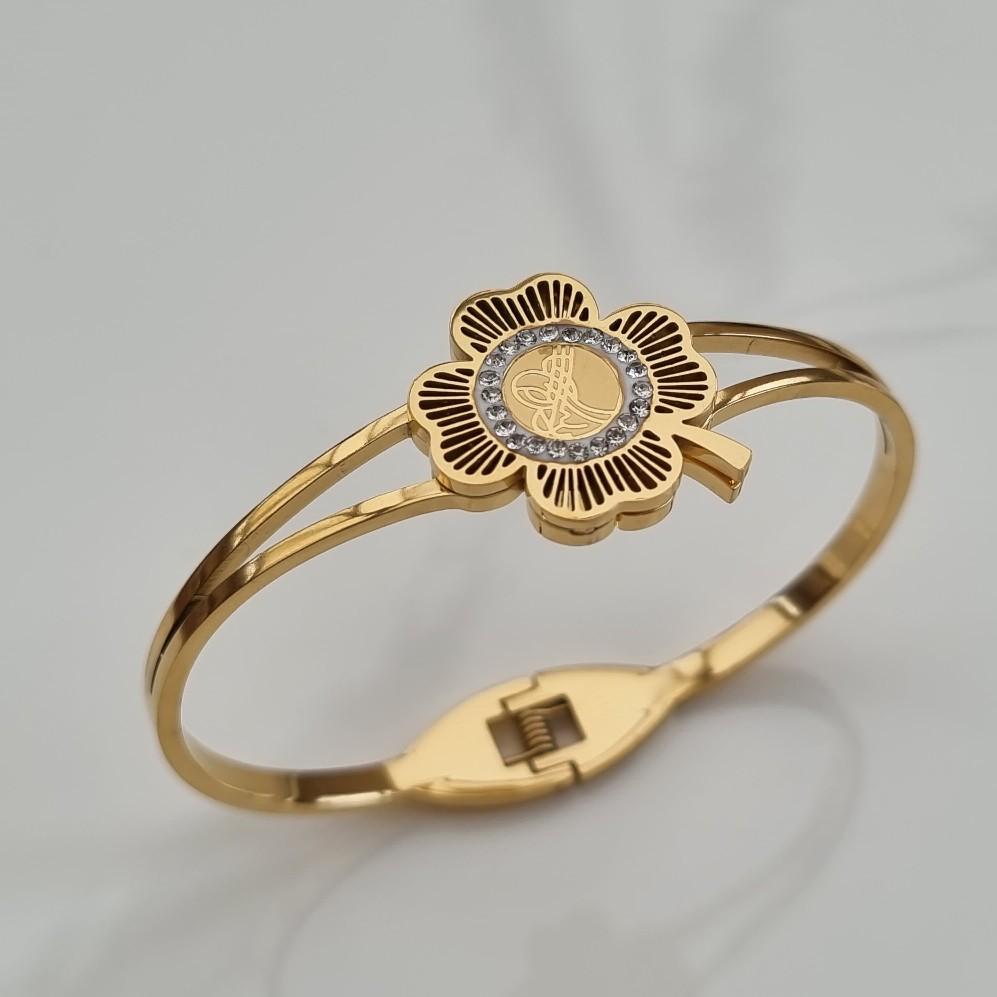 18k Gold Plated Flower Zircon Bangle Stainless Steel