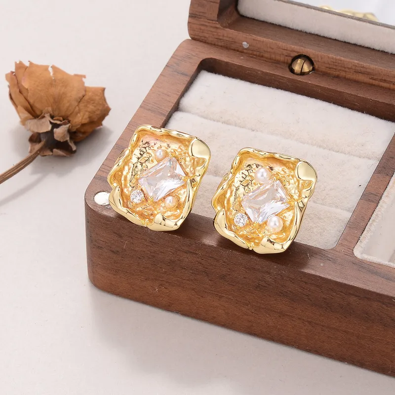 Moissanite and Pearl Statement Stud Earrings, Anti Tarnish, Stainless Steel